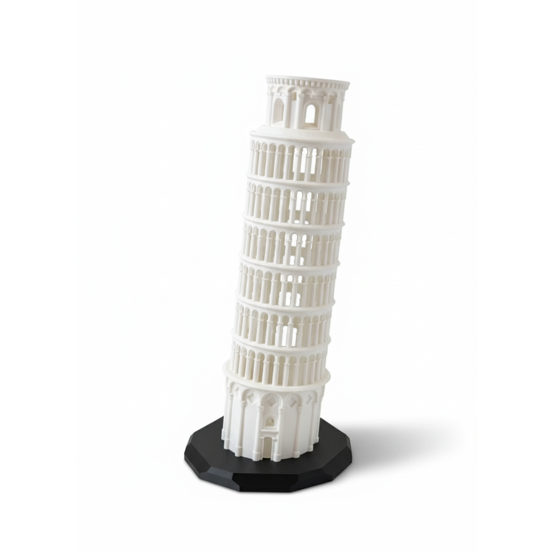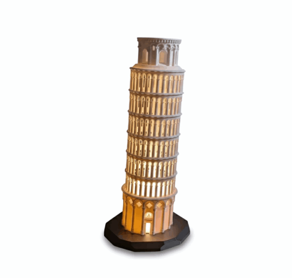 We are proud to present our Leaning Tower of Pisa LED Lamp, a beautiful and iconic masterpiece reimagined in 3D-printed form. Inspired by the famous Torre Pendente di Pisa, this lamp captures the elegant tilt and historic charm of the tower. Crafted using high-quality filament, the tower is now hollow all the way through the top to allow light to emanate throughout, avoiding any dark spots. It’s designed to be printed without any supports, which simplifies the production process and gives a cleaner finish. The lamp works with LED light kits (or LED tea-light style lights) that nest into the base, casting ambient light through the structure. Whether placed in a corridor, night stand, living room, or as a centerpiece, this lamp combines architectural beauty with functional, atmospheric lighting.