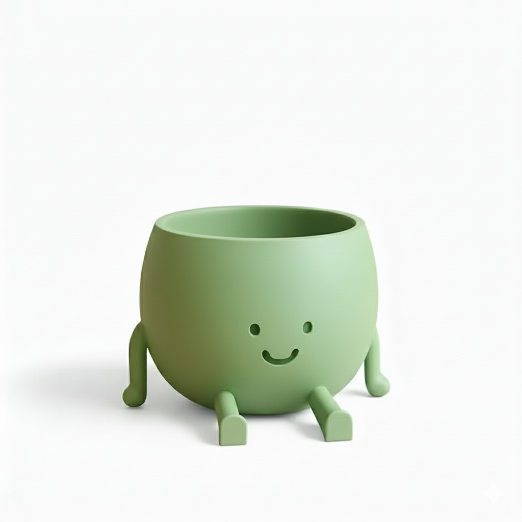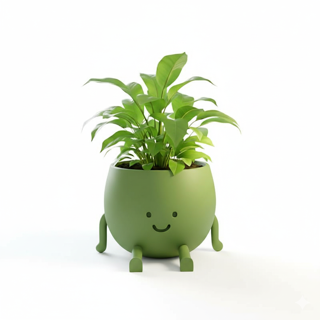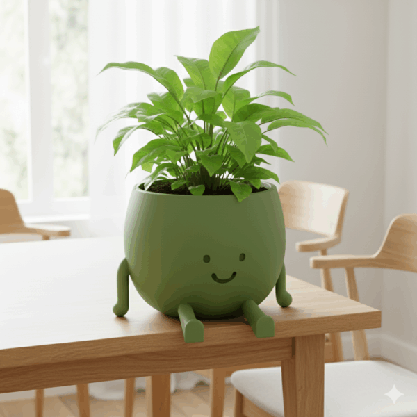Meet our Light Green Smiling Planter, a sweet and cheerful pot that we 3D‐print to bring a smile into your home. Its design features a friendly face, little legs, and a rounded, playful shape that feels both charming and comforting. We use high-quality filament to ensure a sturdy build with a smooth finish. Perfect as a decor piece for desks, shelves, or plant stands. Whether you use it for succulents, cacti, or simply enjoy it as a decor accent—it radiates warmth and joy wherever placed.