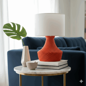 We proudly present our Kita Lamp, an elegant lighting piece that blends modern aesthetics with functional design. Its shade features refined sculptural lines, offering a warm ambient glow through its distinctive form. Manufactured with high-quality filament, each lamp is sturdy, refined, and built to last. We design it to work seamlessly with standard e26/e27 sockets and LED bulbs so it offers both beauty and safety. Whether lighting up your desk, bedside, or living area, it creates a cozy yet sophisticated atmosphere.