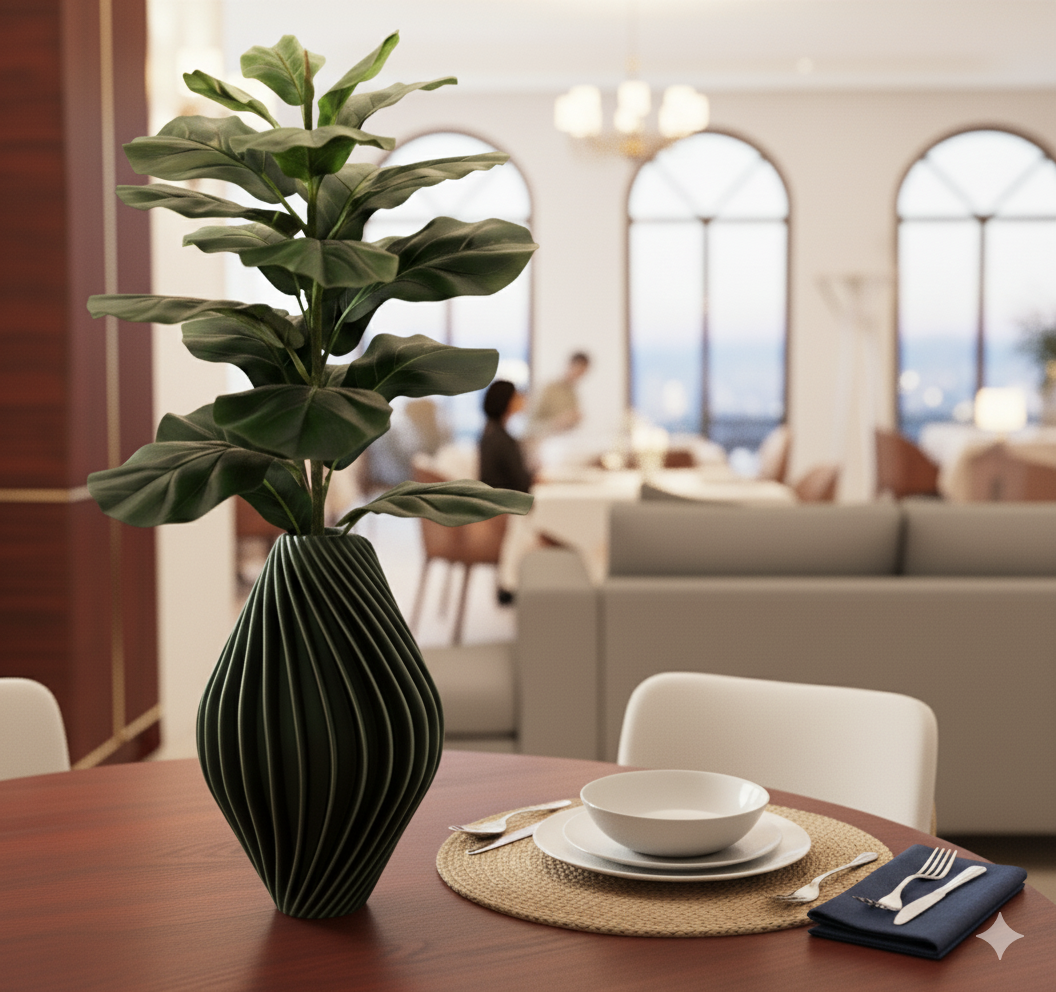The Vati Vase is a fully finished, ready-to-display decorative piece that elevates interiors with modern elegance. With its curvilinear, sculptural form, it captures attention even in an empty state—becoming an artful accent in any room. Meticulously crafted and quality-inspected, each vase offers a smooth, uniform finish and stable base to safely support arrangements of dried or preserved flowers. The gently flared neck holds stems securely while allowing design flexibility. More than a mere container, the Vati Vase is a statement object that fuses artistic form and functional stability, enhancing the ambiance whether placed on a console, mantel, shelf, or dining table.