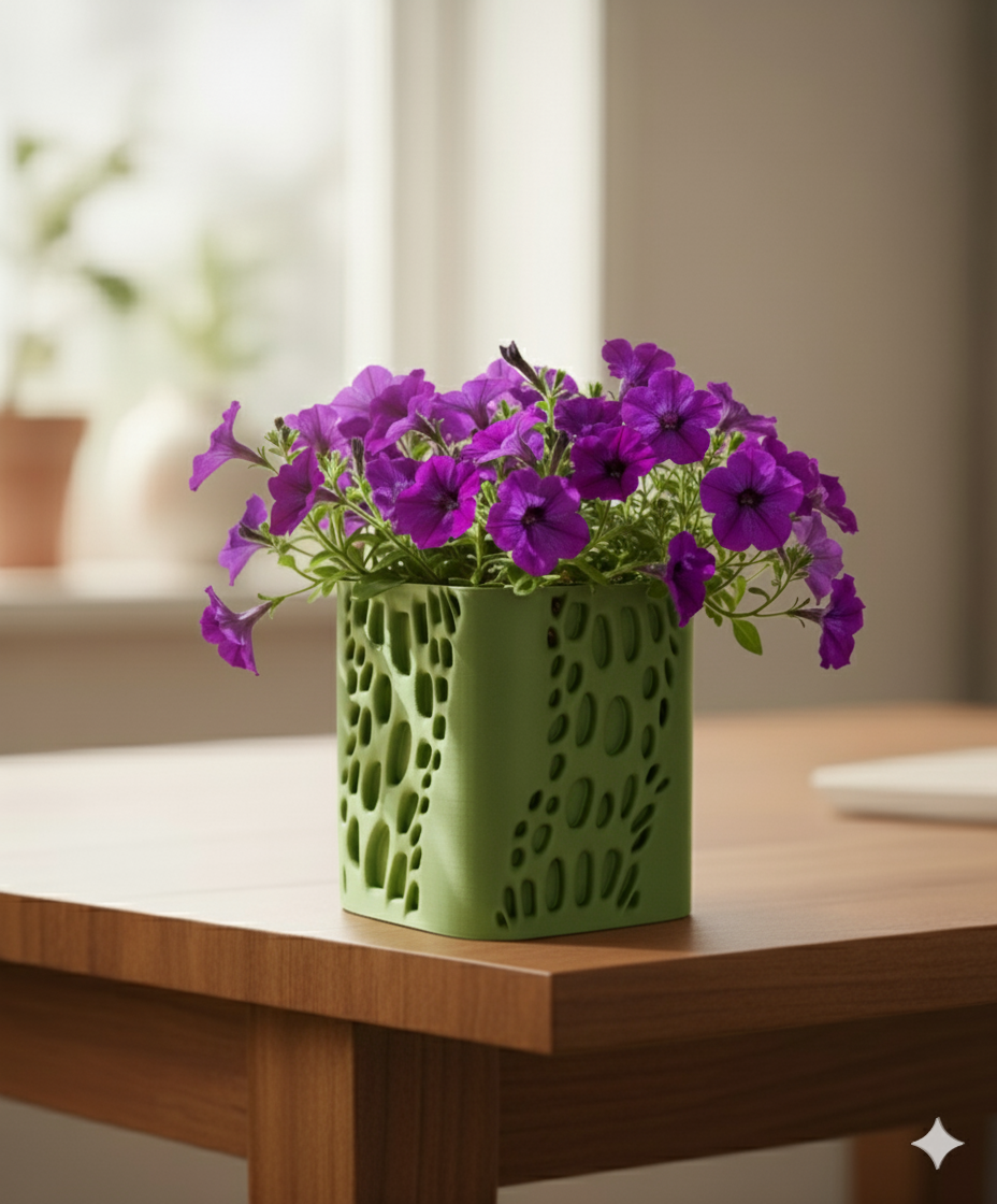Introducing our Vapor Planter Pot, a sleek and modern piece 3D-printed by us with style and function in mind. The vapor-inspired curvature gives it an almost ethereal flow, adding an airy, sculptural quality to wherever you place it. Crafted from high-quality filament, it has a durable build and a smooth, refined finish. This planter is meant to be displayed proudly-filled with your favorite plant or standing as an artistic accent on its own. It easily complements contemporary interiors, minimalist decor, or spaces that appreciate elegant simplicity.
